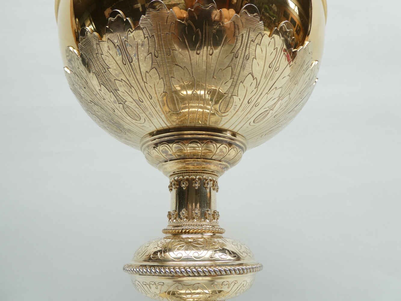 Prachtige grote ZWARE zilveren Gentse ciborie, verguld, zilversmid J. Heursel Gent.