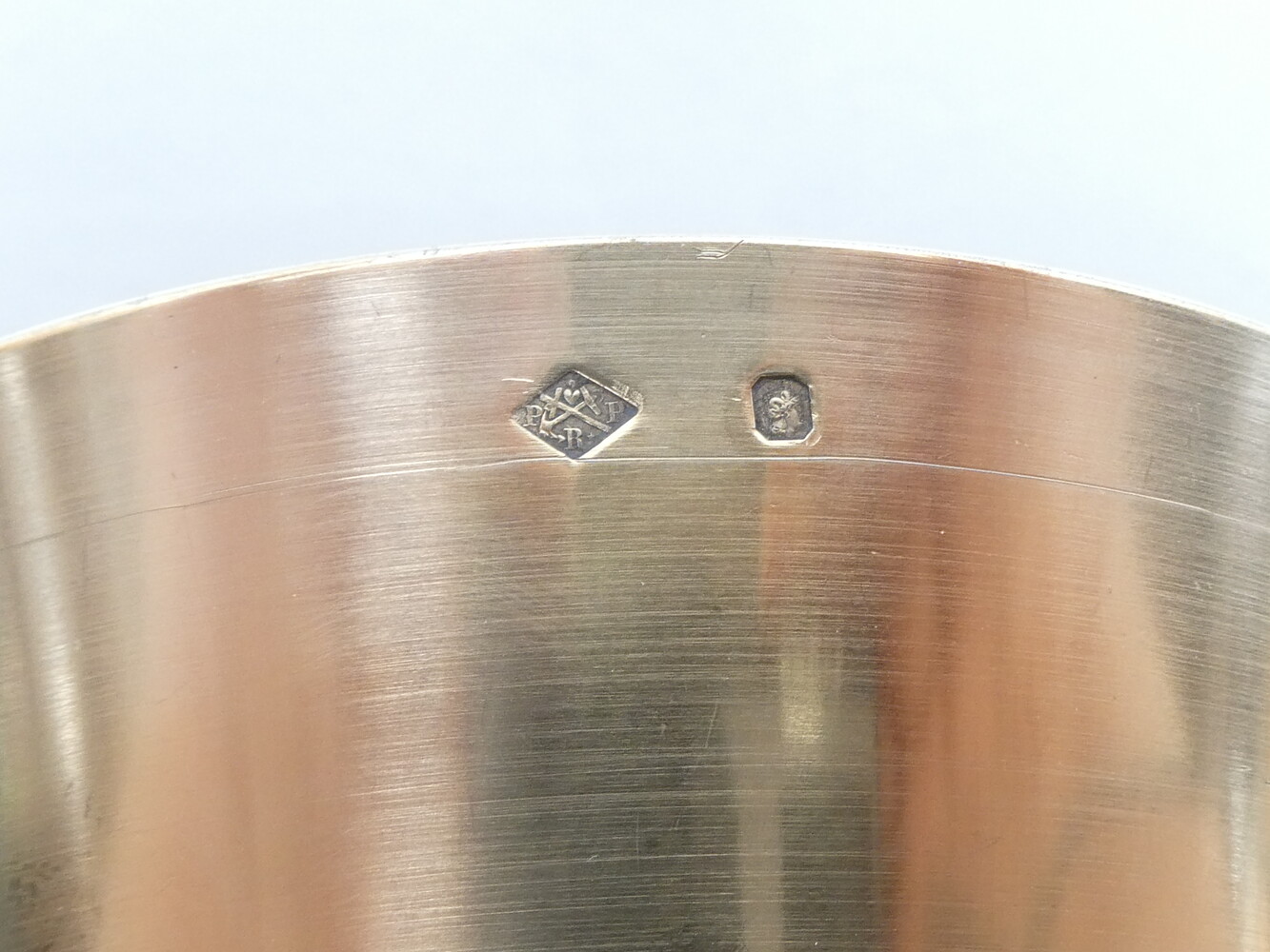 Gehalte 950/1000 - Minervahoofd voor 1ste gehalte en meesterteken op de basis en cuppa. Stam bovenaan gemerkt met een garantiemerk.