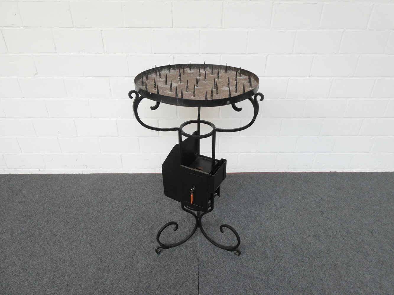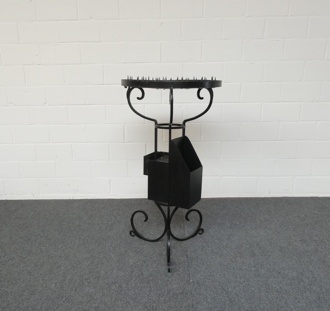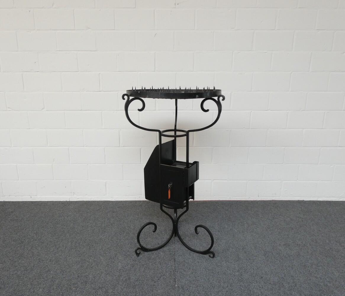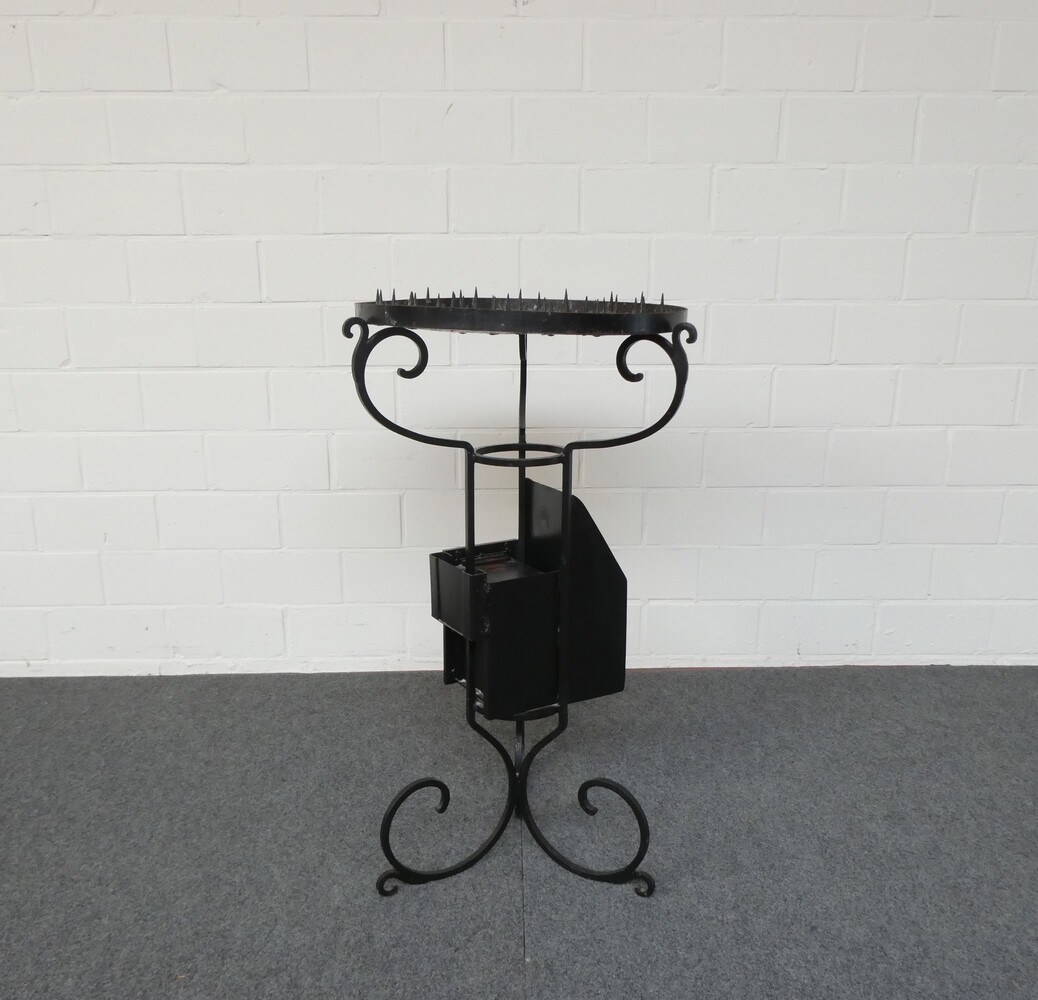 Ronde ijzeren kaarsentafel voor offerkaarsen.