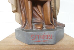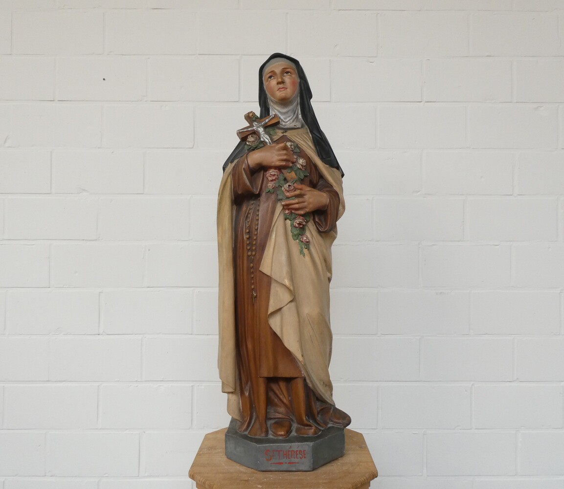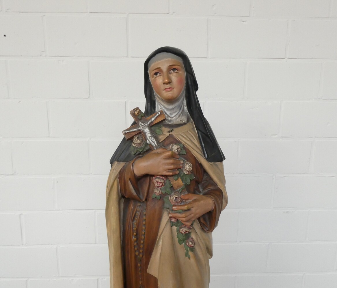 "Sint Theresia" groot antiek lieflijk beeld in gips, polychroom