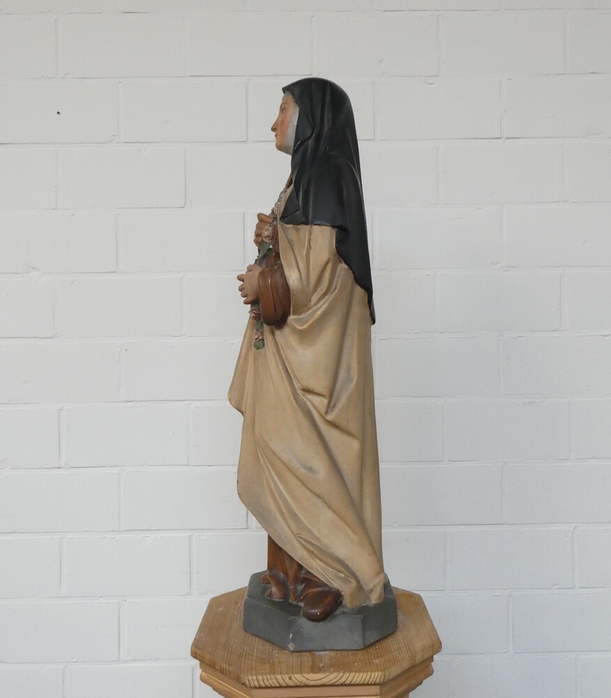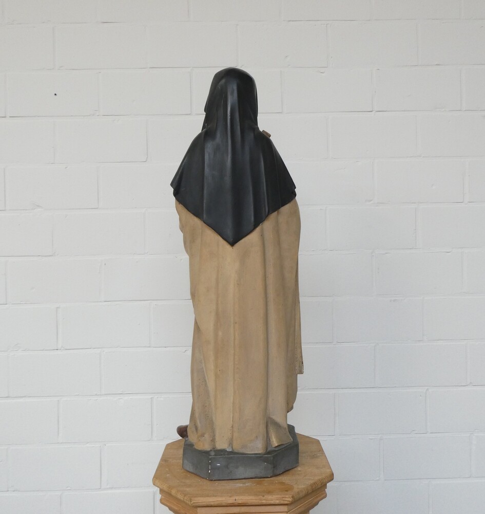 "Sint Theresia" groot lieflijk beeld in gips, polychroom.