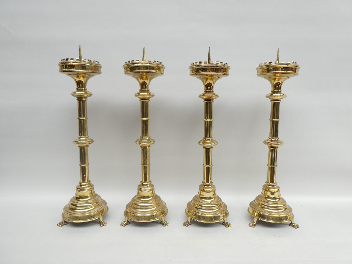 Stel van vier neogotische koperen altaarkandelaars