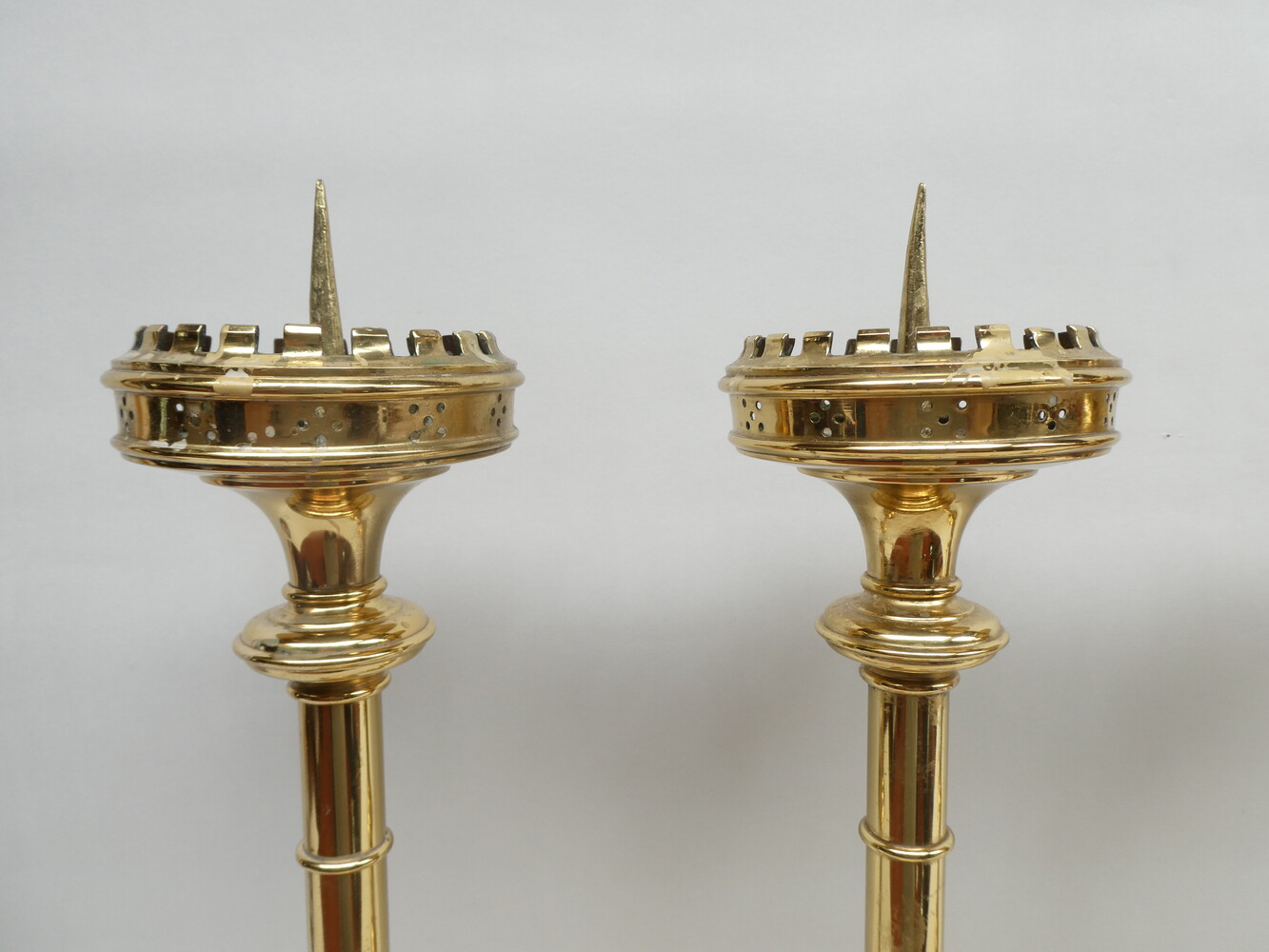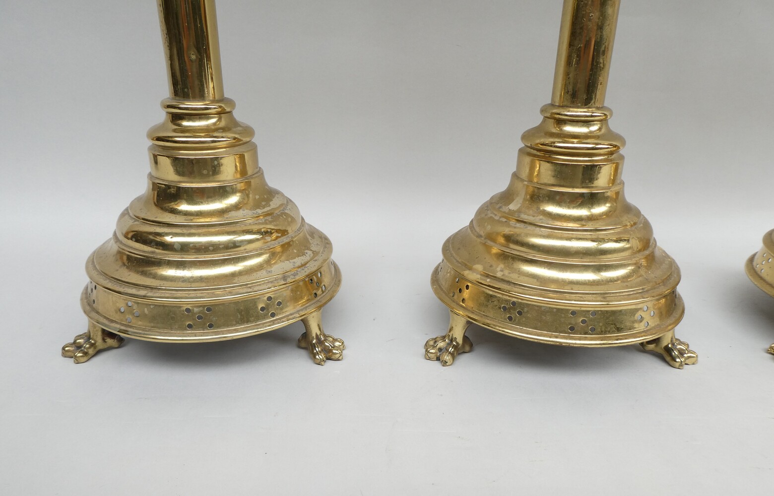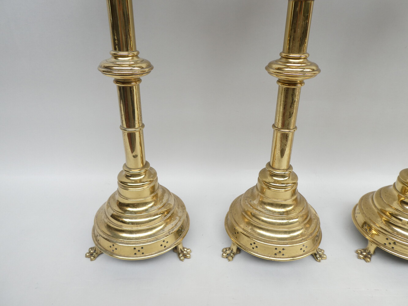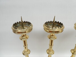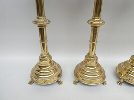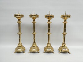 Stel van vier neogotische koperen altaarkandelaars.