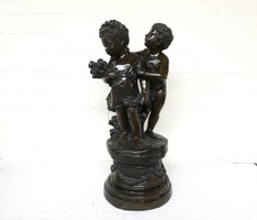 "Twee kindjes" GROOT bronzen beeld, postuum M. Moreau