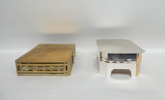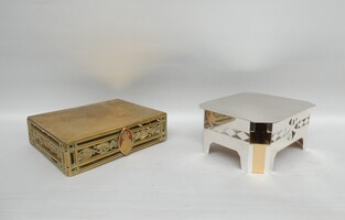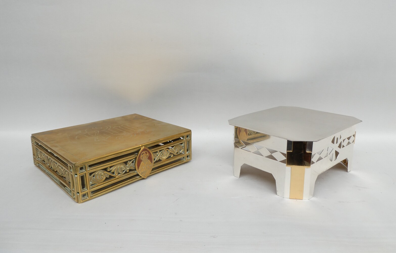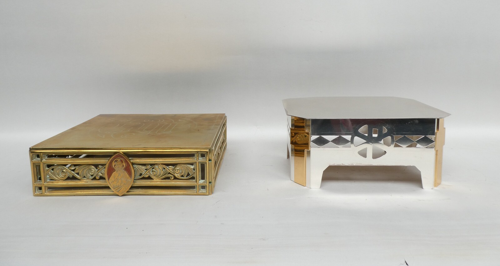 Twee koperen presentatiesokkels : - 29cm x 26cm - hoogte 8cm - 27,5cm x 21,5cm - hoogte 12cm ( verzilverd ).