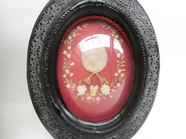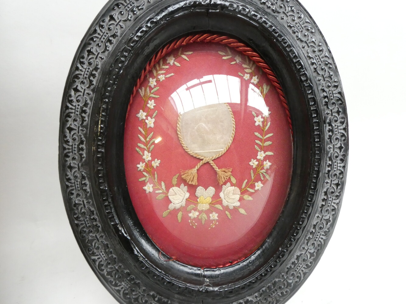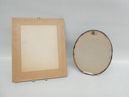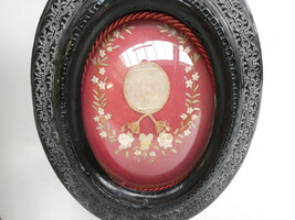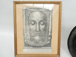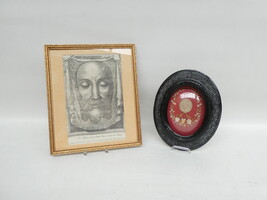 Twee antieke religieuze kadertjes : - één ovaal met "Agnus Dei" 22cmx28cm, - één met "doek van Veronica" 31cmx37cm.