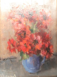 "Vaas met bloemen" oliewerkje van Vic Dooms