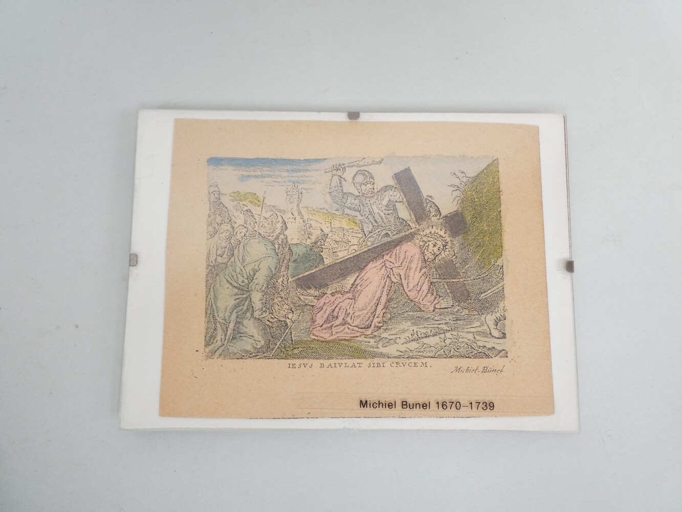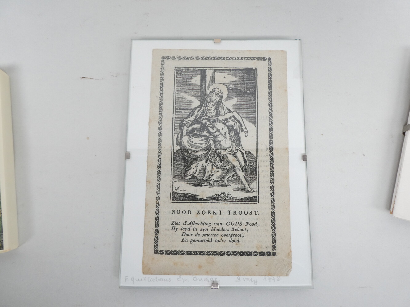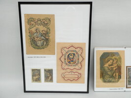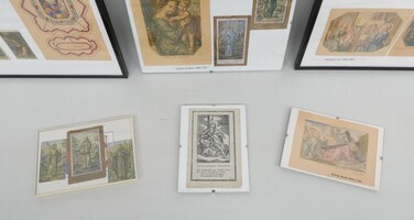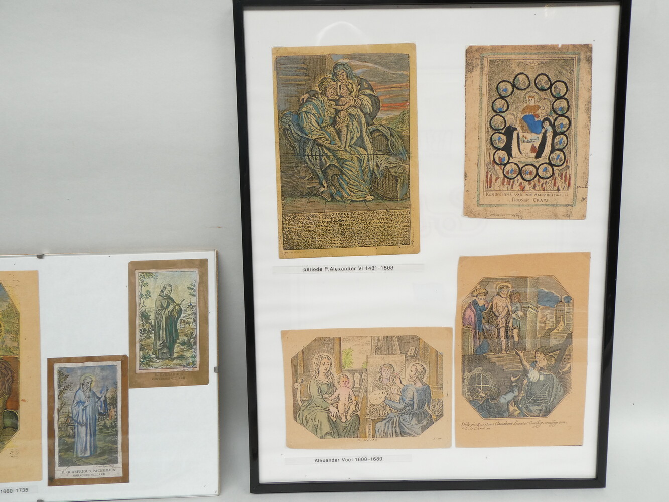 Varia kaders met antieke religieuze houtsneden en gravures.