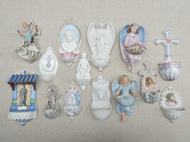 Veertien antieke porseleinen wijwatervatjes
