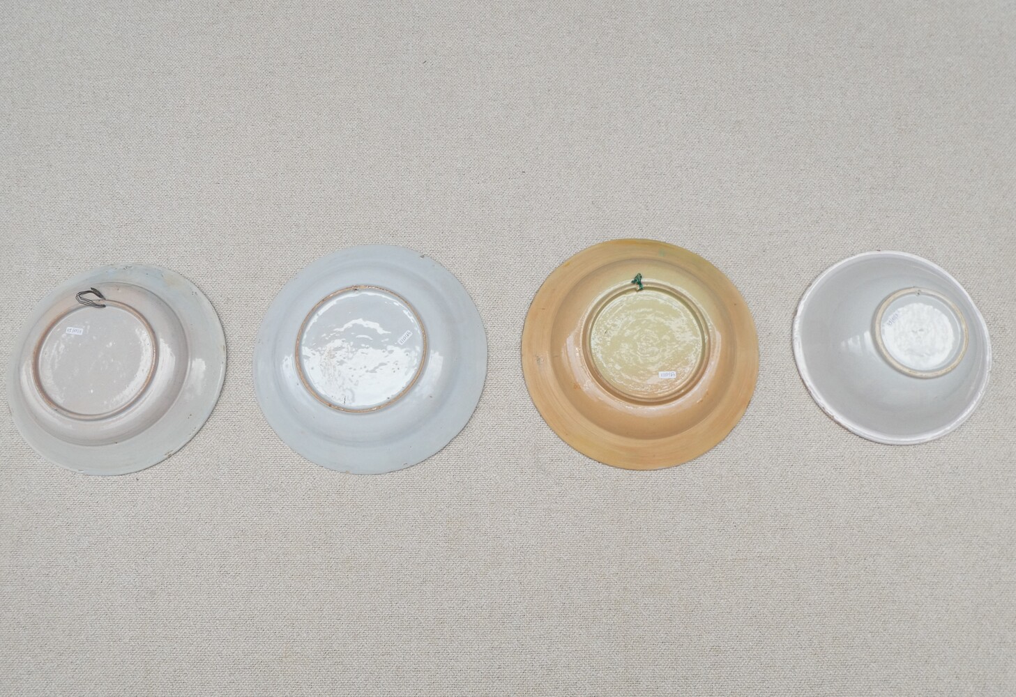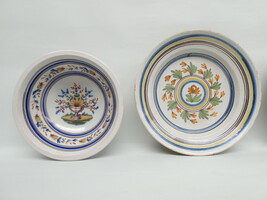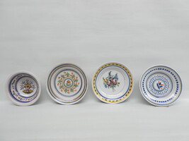 Vier antieke borden Vlaams aardewerk, polychroom.