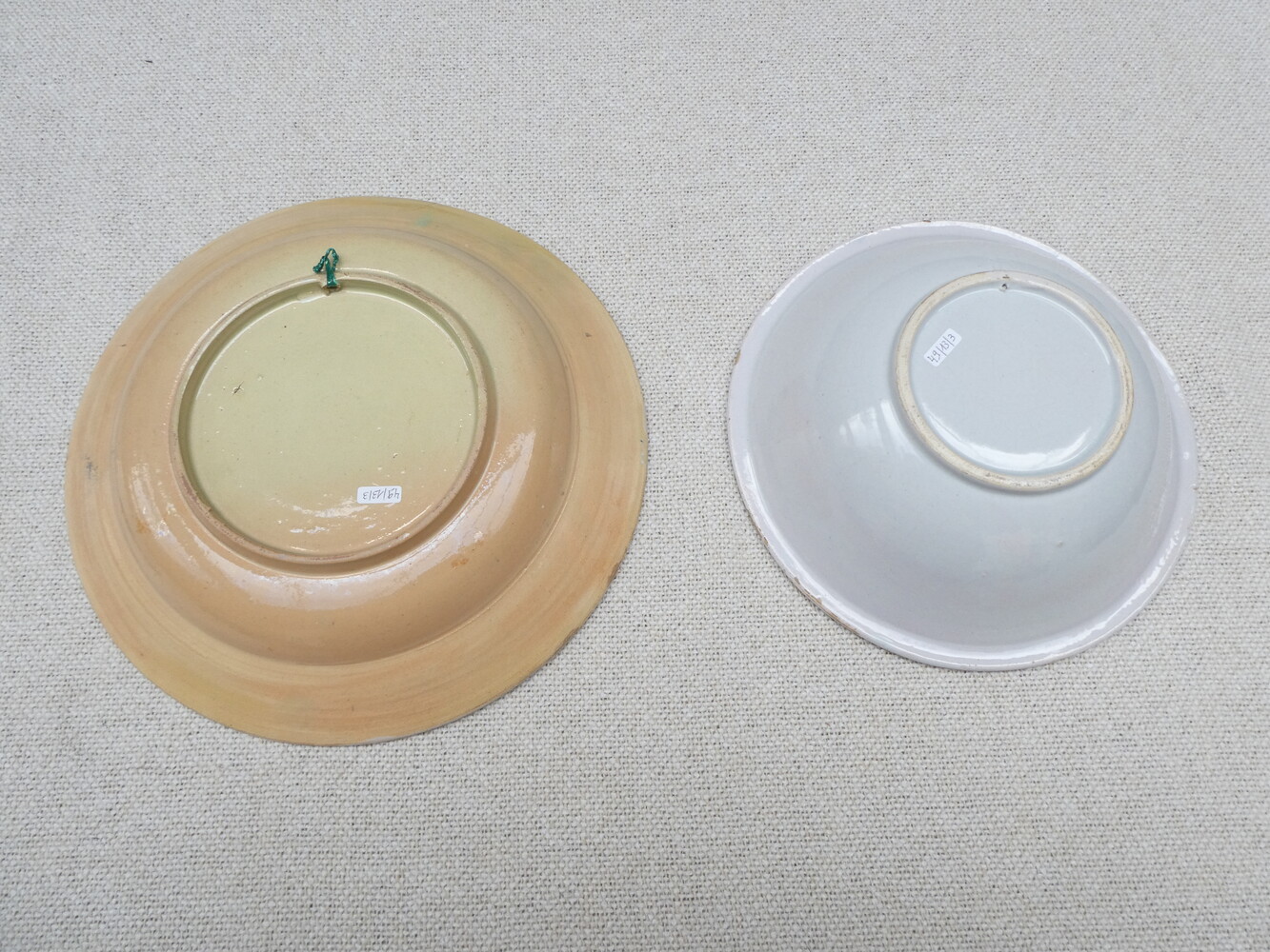 Vier antieke borden Vlaams aardewerk, polychroom