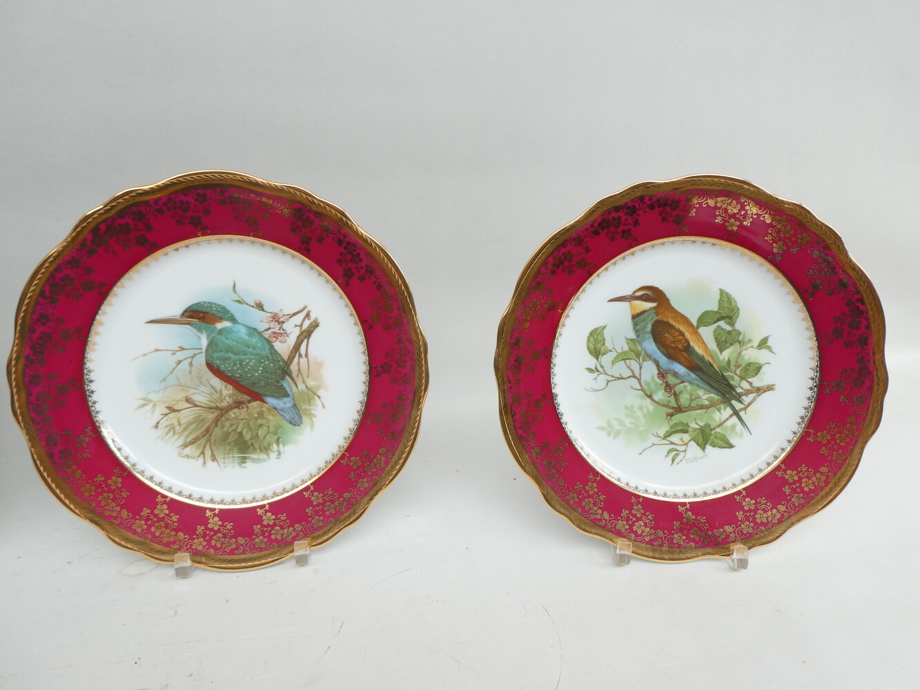 Vier sierborden "Limoges" met vogels