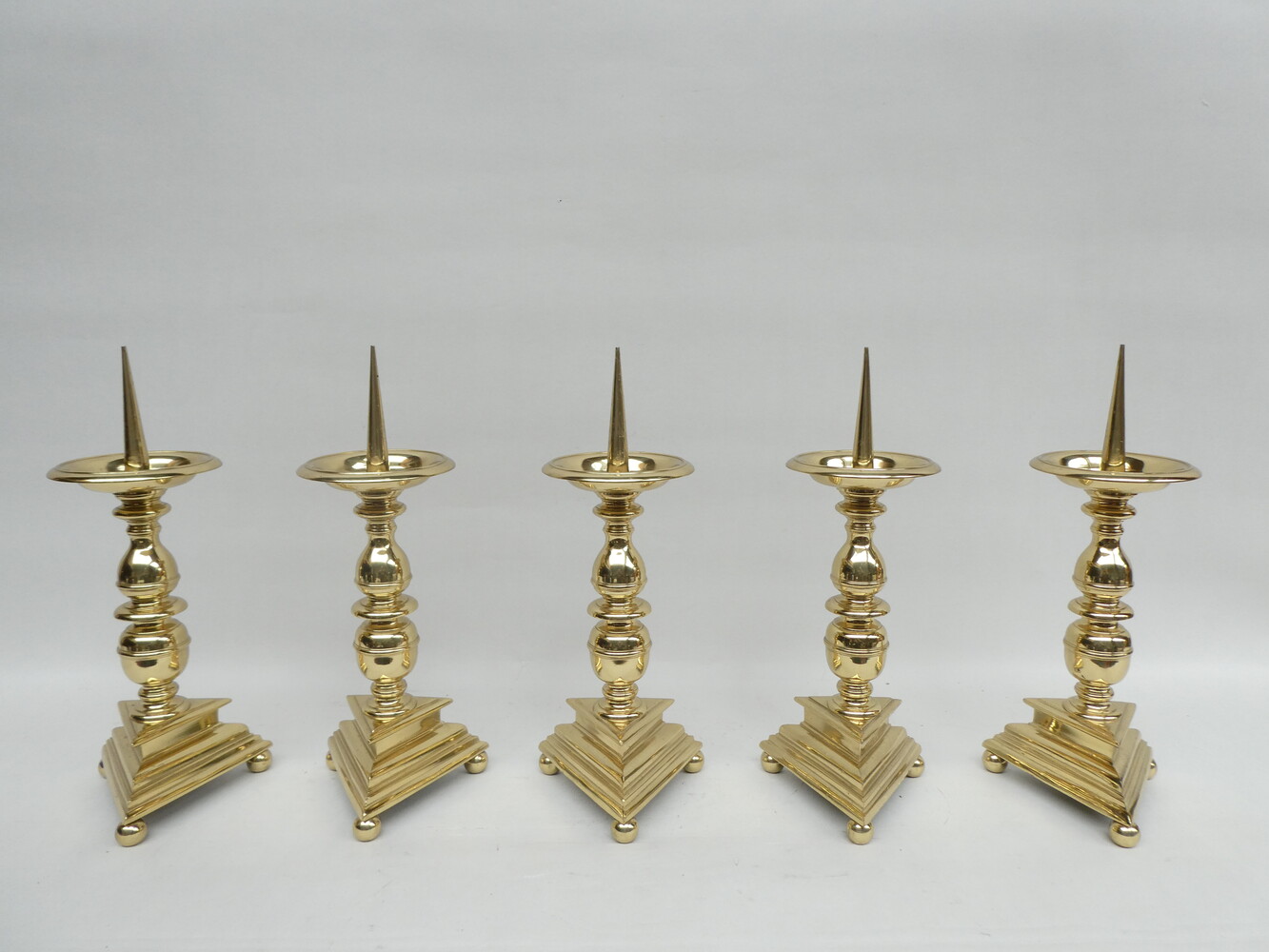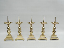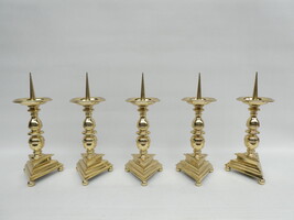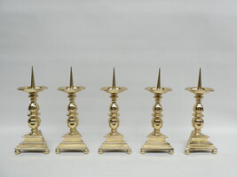 Vijf ZWARE koperen altaarkandelaars.
