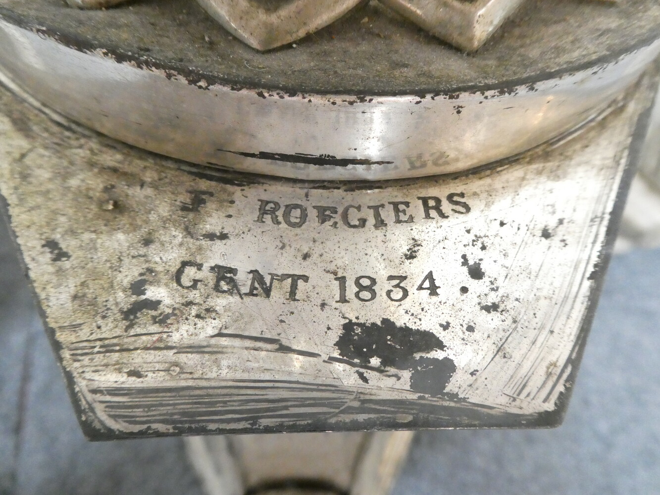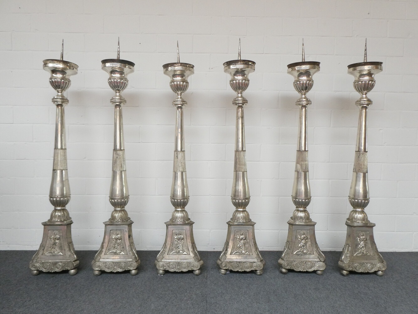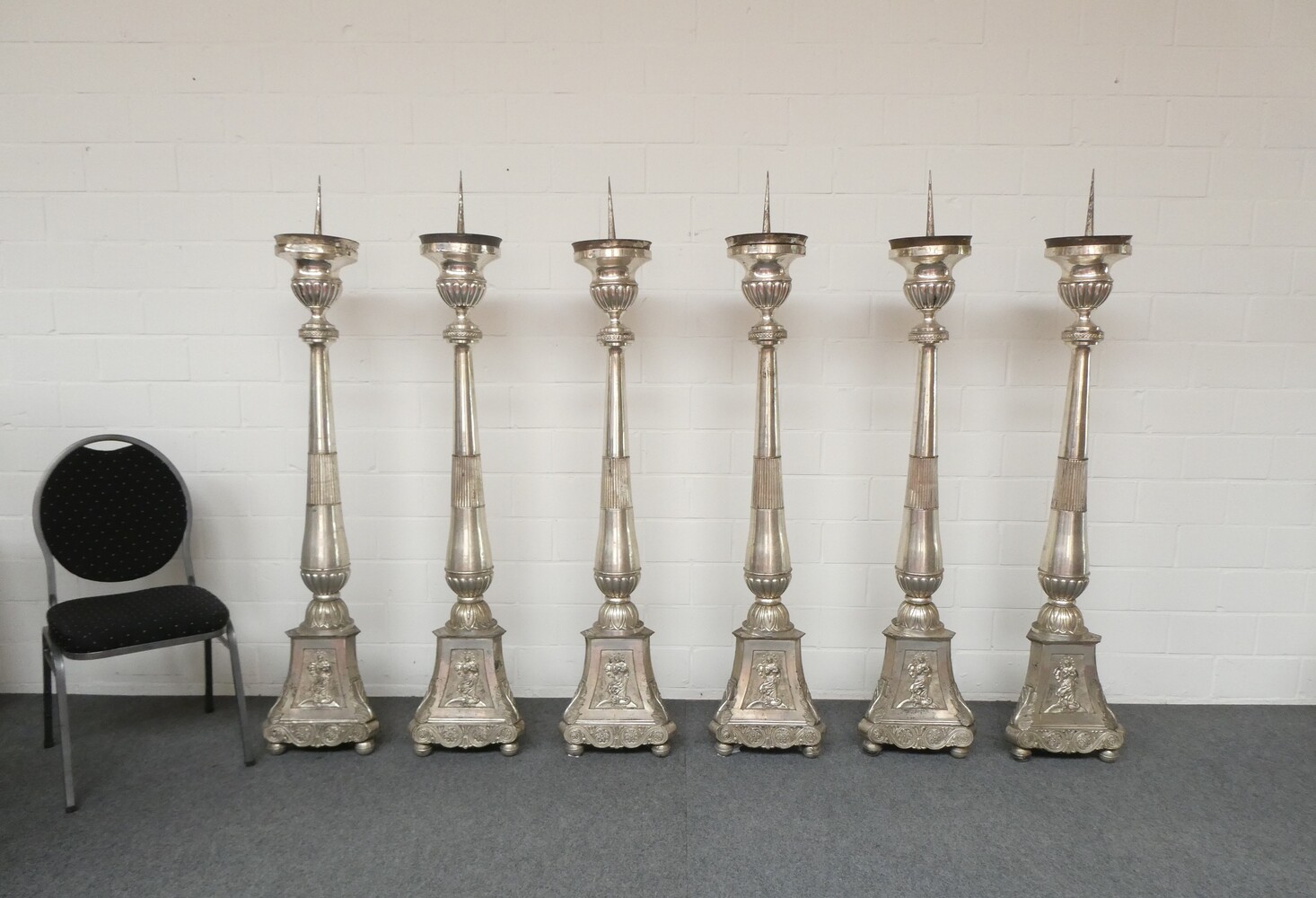 Set van zes HOGE kerkkandelaars in koper/verzilverd, gemerkt F Roegiers en gedateerd Gent 1834.