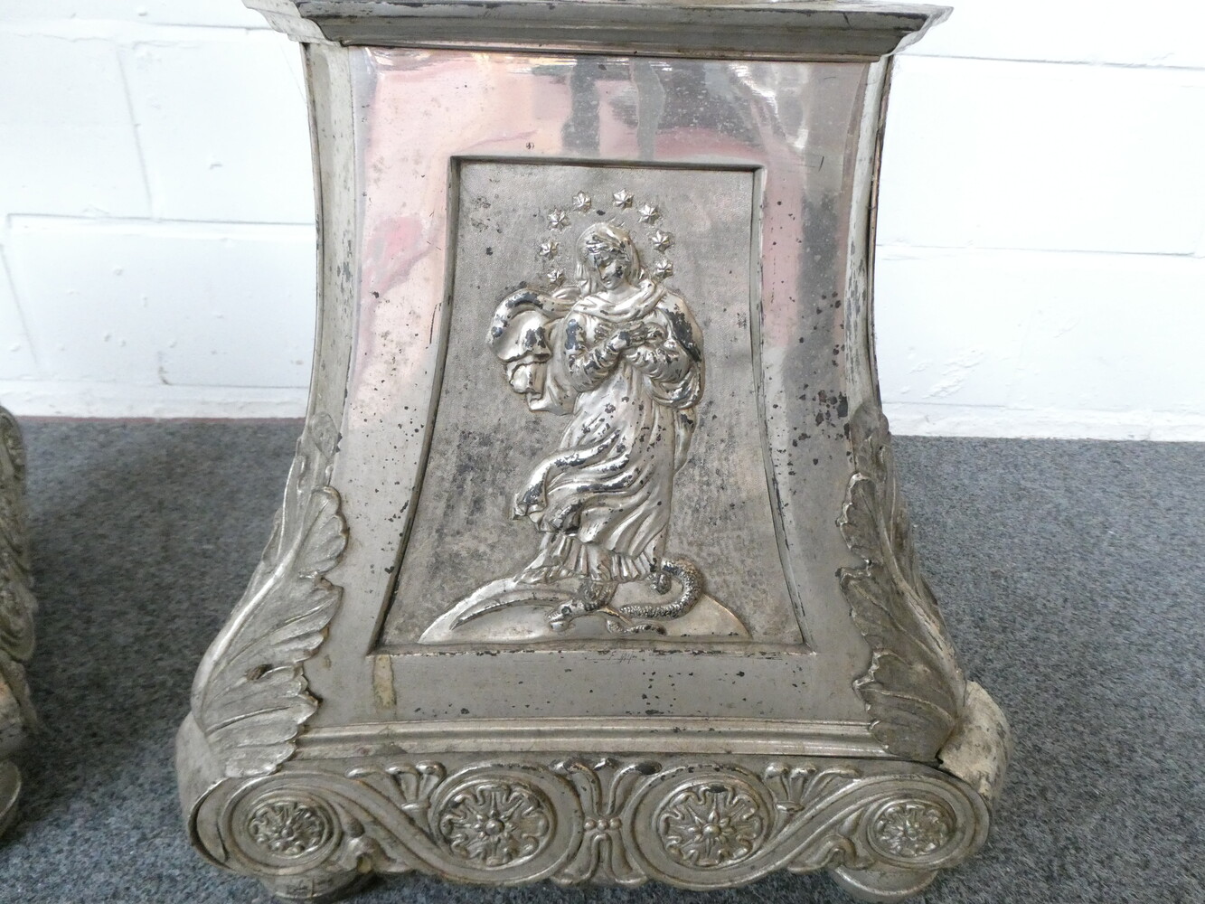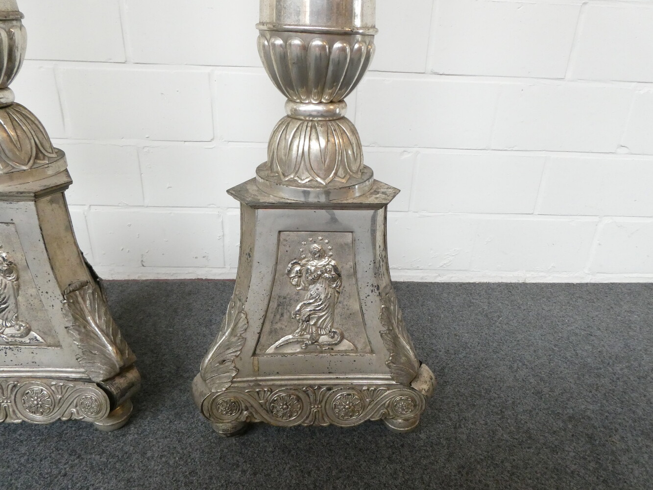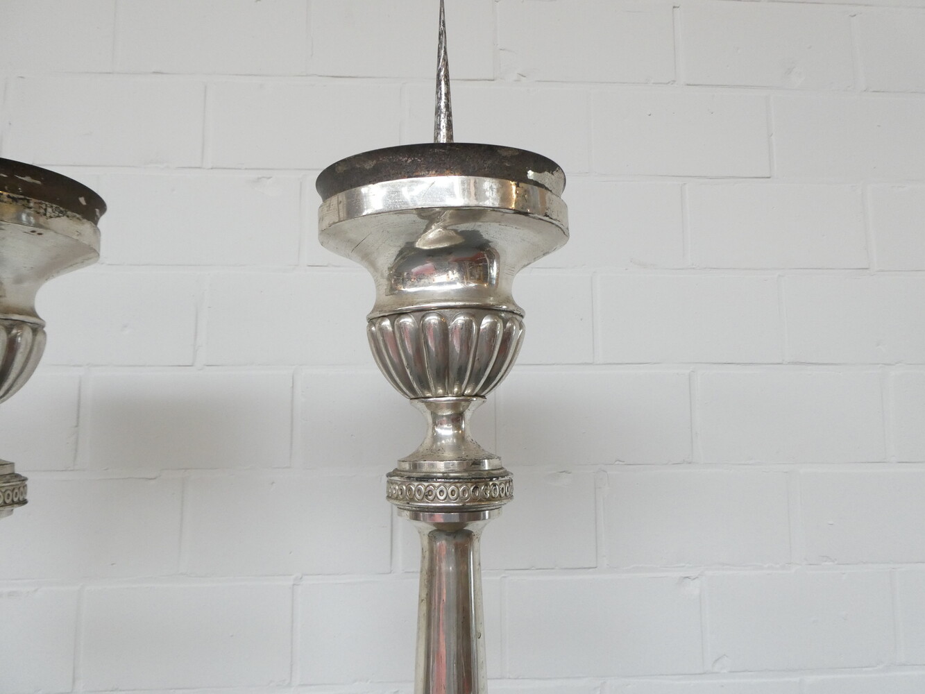 Set van zes HOGE kerkkandelaars in koper/verzilverd, gemerkt F Roegiers en gedateerd Gent 1834.