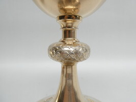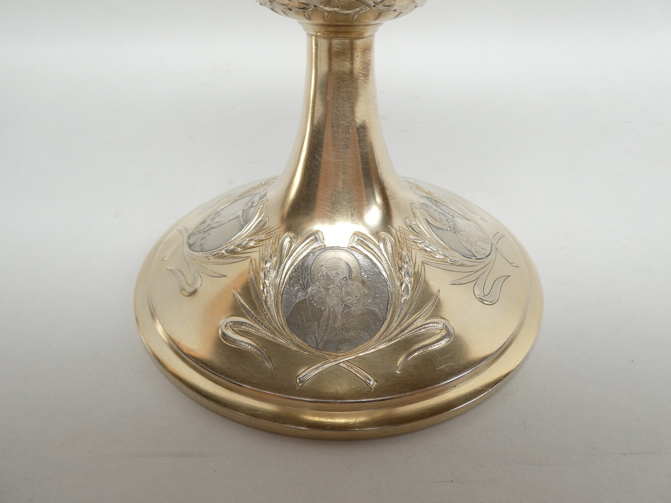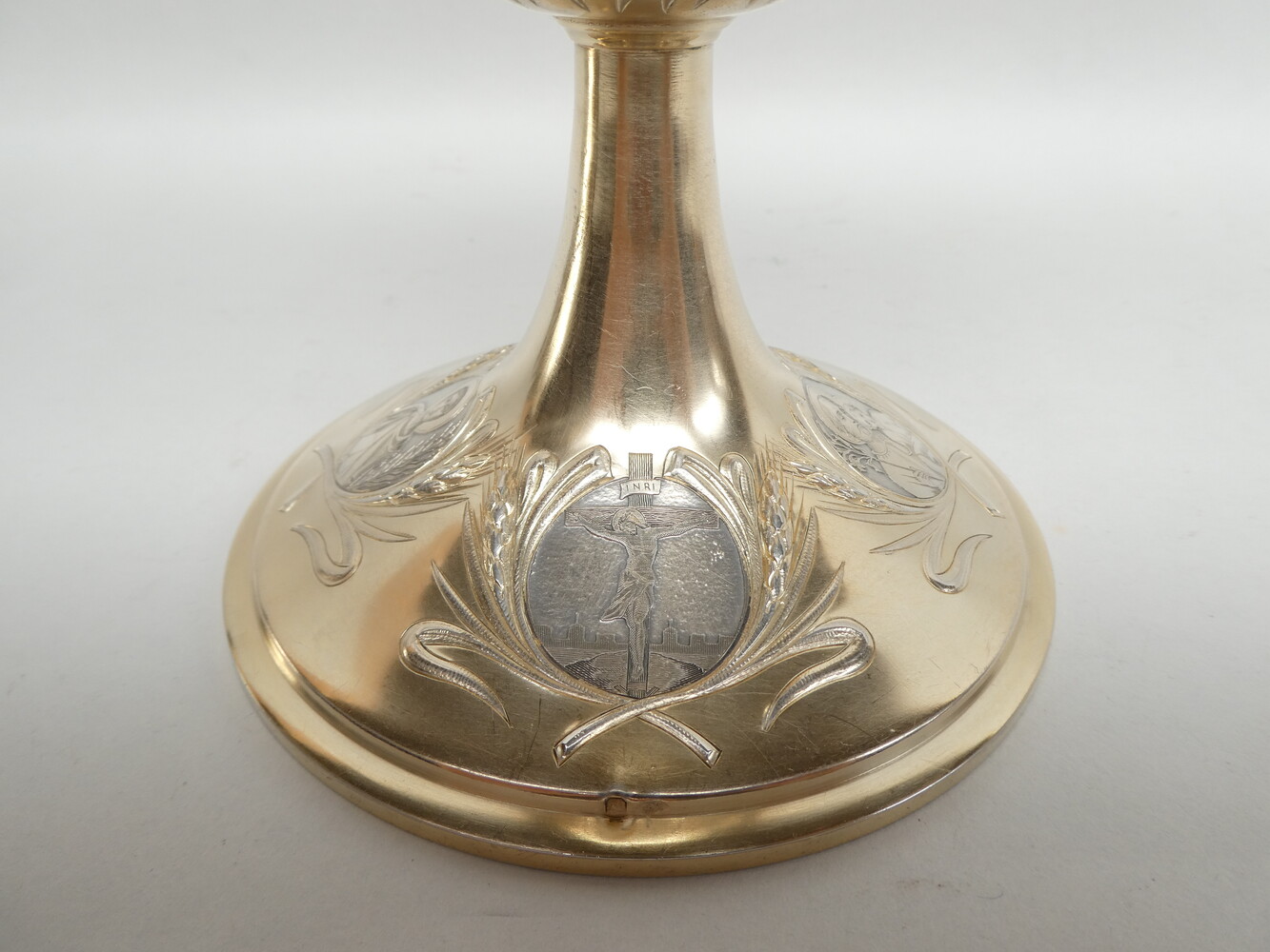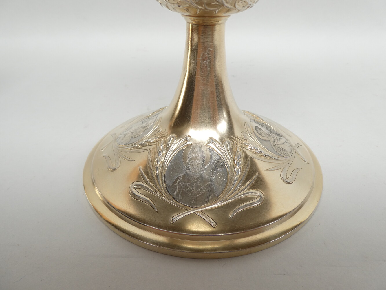 Zilveren kelk/verguld + pateen, vier medaillons in de voet
