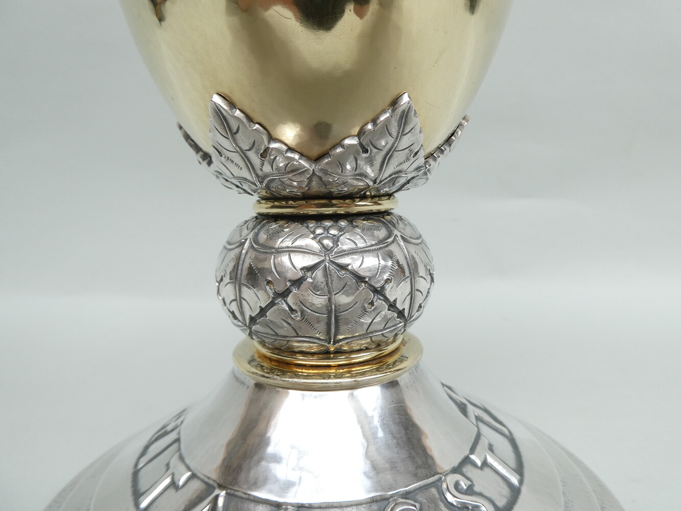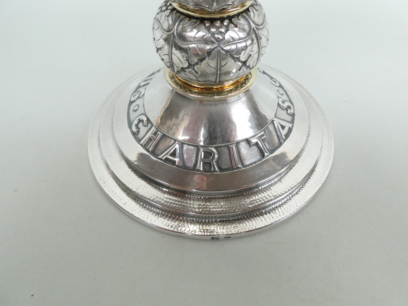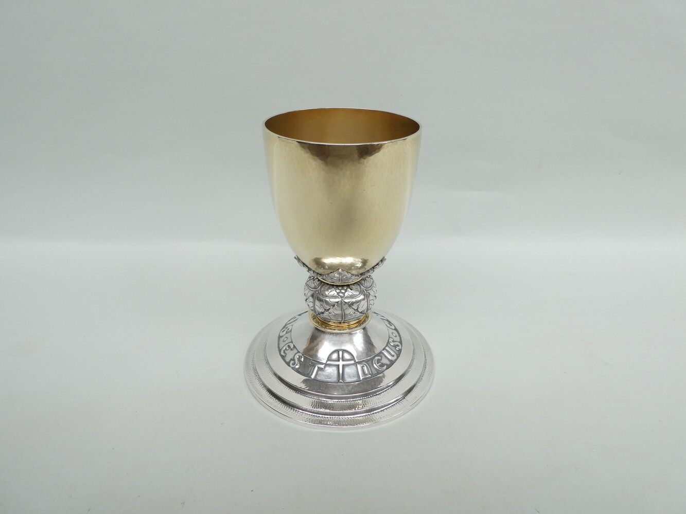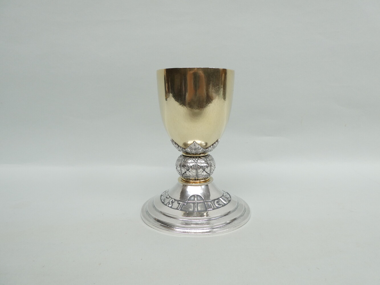 Zware zilveren Leuvense gestileerde kelk, van de zilversmid Jean Ausloos, gedateerd 1952, 1er titre - gehalte 925. Hoogte 17cm - totaal gewicht 715gram.